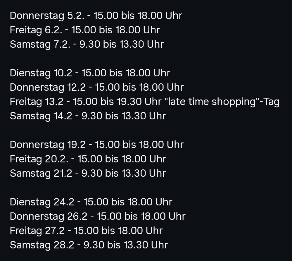 Aktuelle Öffnungszeiten